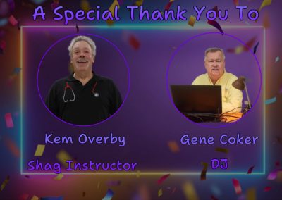 A huge shout‑out to Kem Overby for volunteering his time to teach shag lessons. Kem, you had the room buzzing and the dance floor packed before the music even started.